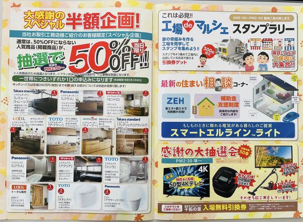 さらに早出賞として新米5キロを先着30名の施主様にプレゼントします♪さらに!!今回は『工場deマルシェ』も同時開催します!!工場スタンプラリーでマルシェで使える金券プレゼントの太っ腹企画です♪工場deマルシェは地域の飲食店さん・ショップ皆様の協力のおかげで開催できます。