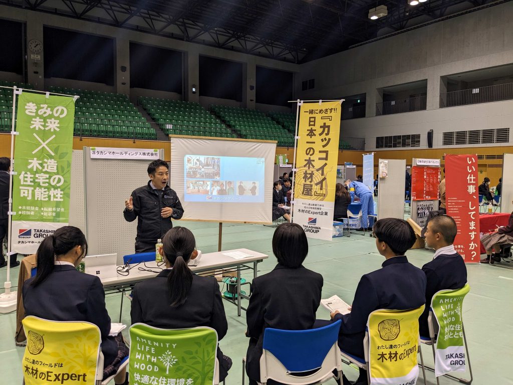 本日諫早中央体育館で行われた高校生向けの企業説明会に出展いたしました。