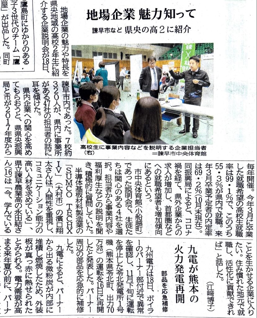 12月19日 長崎新聞様記事に弊社説明会の様子を写真を掲載いただきました。